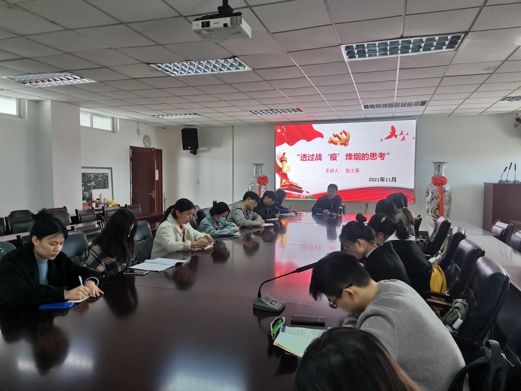近期国内疫情反复,为增强疫情防控意识,深化抗疫经验反思,学习抗疫奋斗精神,11月11日,大乐透 党委副书记张士青在德经楼508会议室给金融工程党支部全体党员讲授“透过战‘疫’烽烟的思考”主题党课。