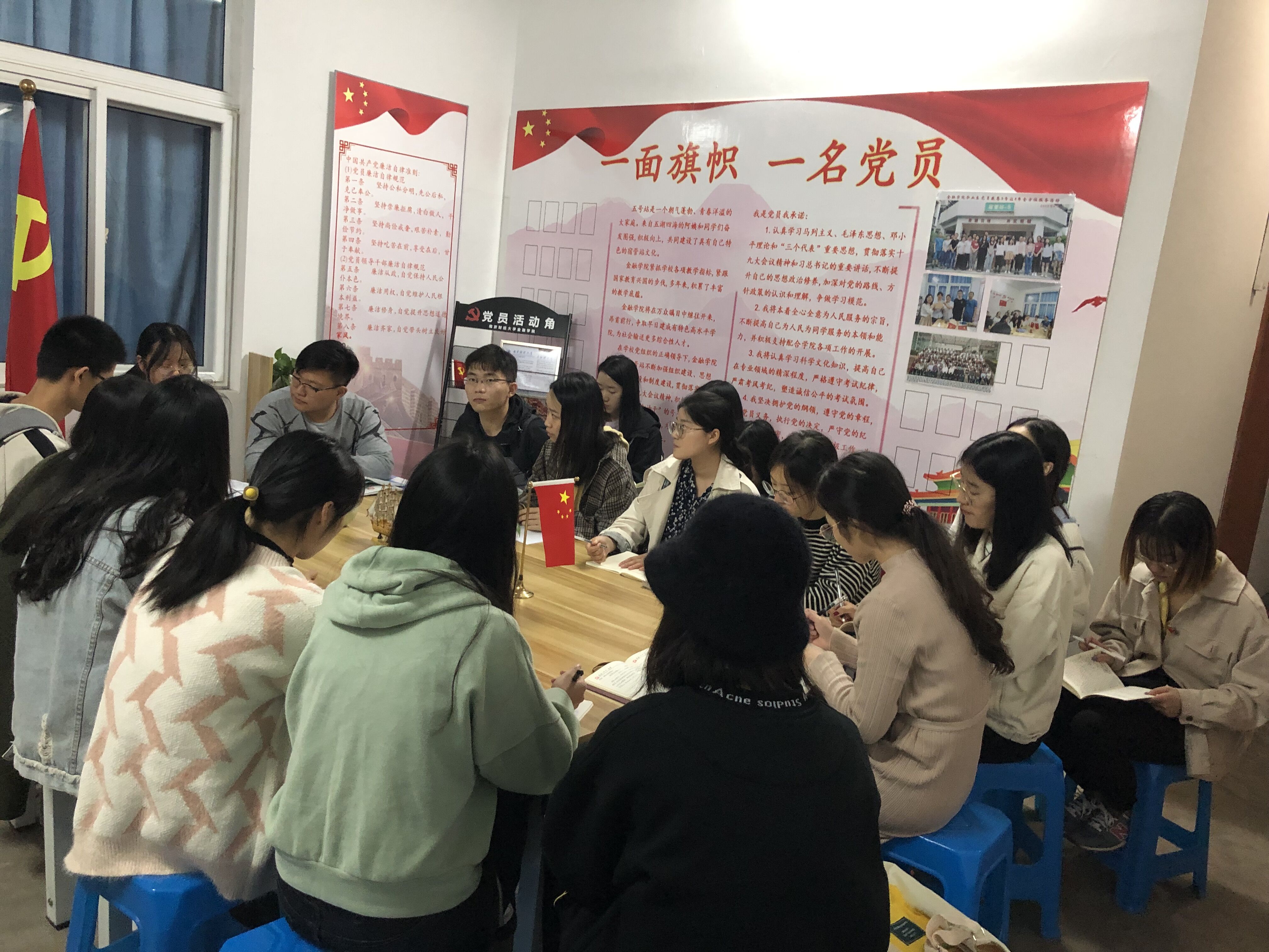 11月4日下午,大乐透 研究生第二党支部全体党员在仙林校区五号宿管站大乐透 党员活动角深入学习《中国共产党第十九届中央委员会第四次全体会议公报》。本次活动由研究生第二党支部副书记田鹊主持。