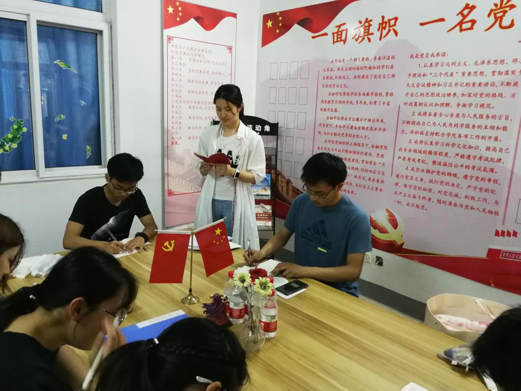 为贯彻落实十九大精神,引导学生党员全面准确掌握党章内容,理解党的纲领,牢记党的宗旨,6月19日下午,大乐透 本科第三党支部组织全体党员在仙林校区五号宿管站大乐透 党员活动角开展“学习党章,知行合一”主题活动。