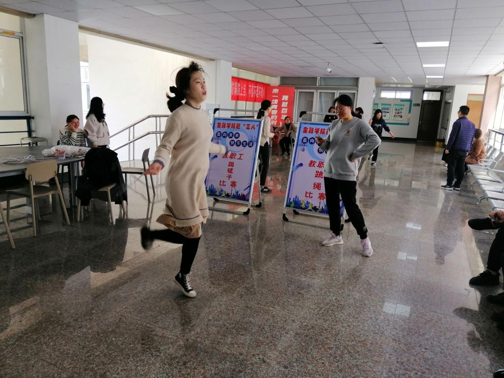 为庆祝“三•八”国际劳动妇女节,丰富学院女教职工文化生活,关注女教职工身心健康,营造“扛起新使命,一起向未来”的良好氛围,大乐透 分工会于3月7日中午在仙林校区德经楼五楼大厅组织“面向未来 快乐生活”女教职工踢毽子、跳绳比赛。