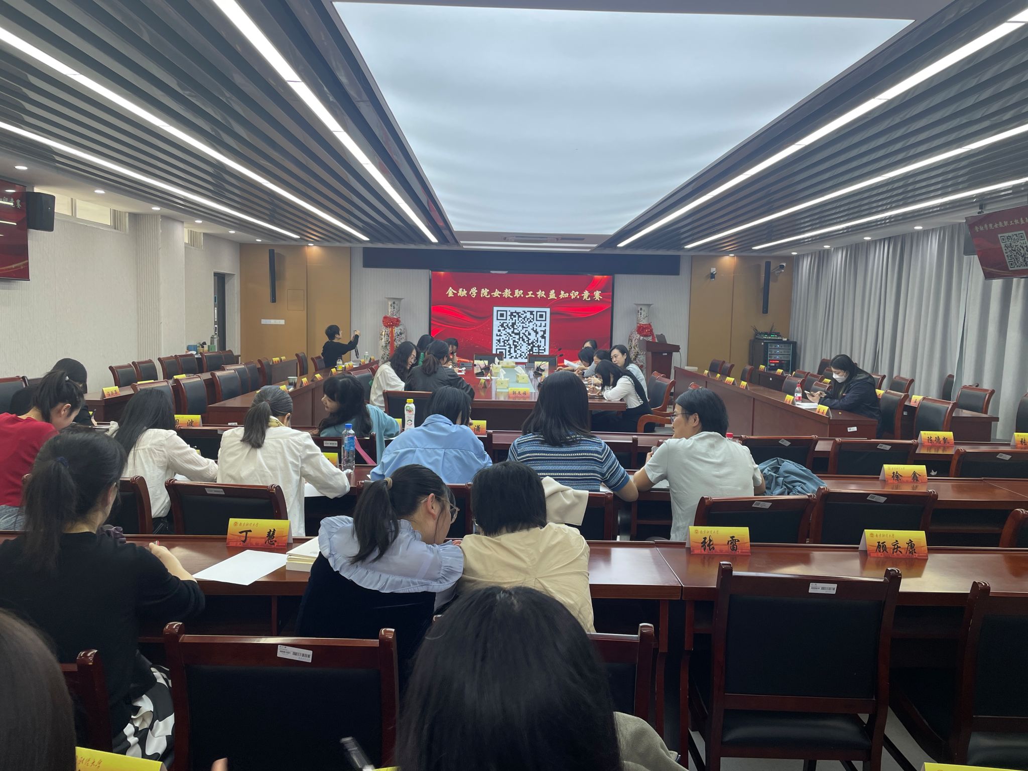 各位女教职工准备充分、自信满满,在紧张有序的氛围中完成答题。通过答题的方式,进一步巩固了学习效果。