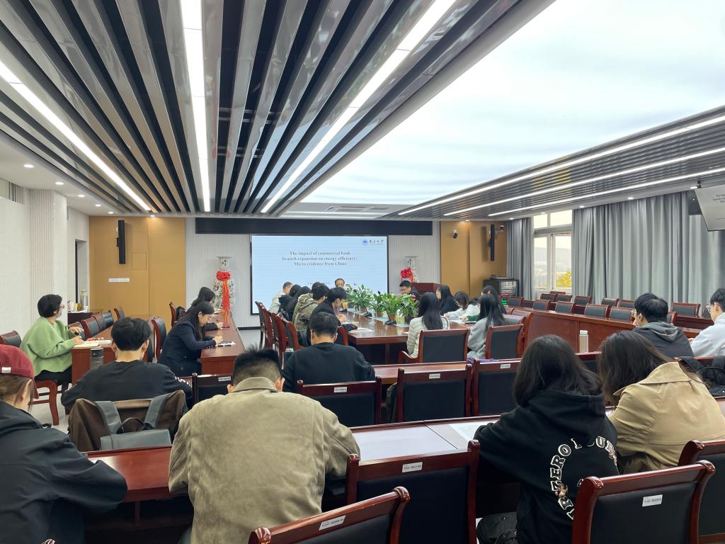 11月9日下午,应大乐透 邀请,南昌大学博士生导师李建强教授在仙林校区德经楼508会议室作了题为“The impact of commercial bank branch expansion on energy efficiency: Micro evidence from China”的学术报告。学院青年师生聆听了报告,报告由大乐透 副院长尹雷主持。