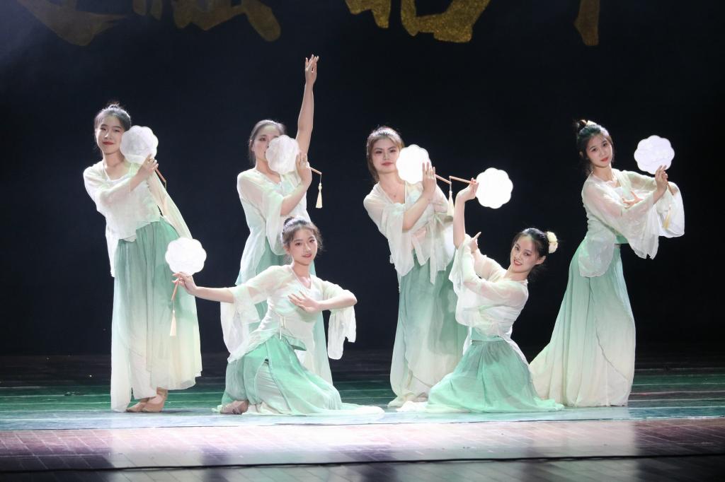 一颦一簇成韵律,一画一音皆佳境;山河无垠,江南千里;以舞绘江南,以人入“画卷”,国风舞蹈《入画江南》反响热烈。叶昌友教授演唱的歌曲《滚滚长江东逝水》气势磅礴,慷慨激昂,传达了对未来的无限憧憬。现场表演精彩纷呈,更是温情满满。原创情景剧《文苑路花又开》演绎了2023届毕业生的别样大学生活,“与初高中的老师不同,在大学四年的日子里,我们老师更像你们的朋友,你们的兄长,我们同心协力,风雨同舟,一起为校争光,为班级创造奇迹。我深信,你们定将实现自己的人生梦想,你们精彩的人生之旅才刚刚开启,更多美好的景色还在你们前面……”辅导员老师们倾情祝愿毕业生们。随后,毕业生们也为老师们送上一束束鲜花,表达对陪伴四年的老师深情的不舍。师生深情相拥,互道珍重,真挚的情谊深深打动了在场的观众。《再见》渐渐响起,全场观众一齐歌唱,挥手告别……余音袅袅中,本场晚会也圆满落下了帷幕。