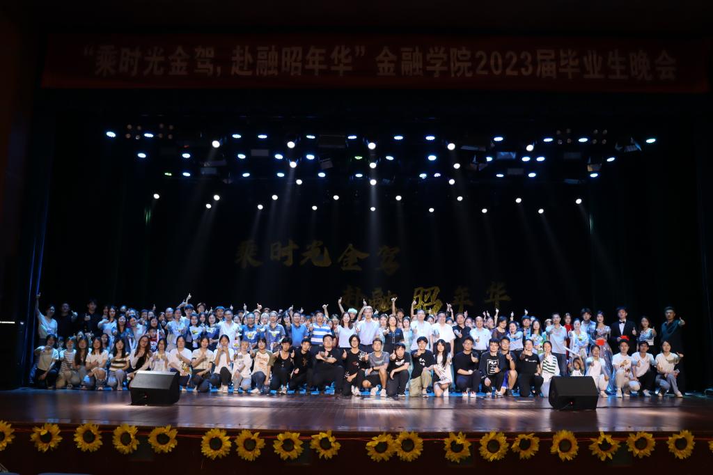 本场晚会共有三个篇章,分别是拂晓启程、一路向阳、逐梦远方。活动伊始,毕业生们来到签名墙签字拍照留念,在入口处领取节目单,脸上洋溢的笑容可见他们对本次活动充满了期待。18时30分,404NF音乐社带来的歌曲《都选C》瞬间点燃了现场气氛,晚会正式开始。通过手语操、歌曲串烧、情景剧、舞蹈等13个精彩节目彰显金融学子的精神风貌、青春风采和奋斗模样。