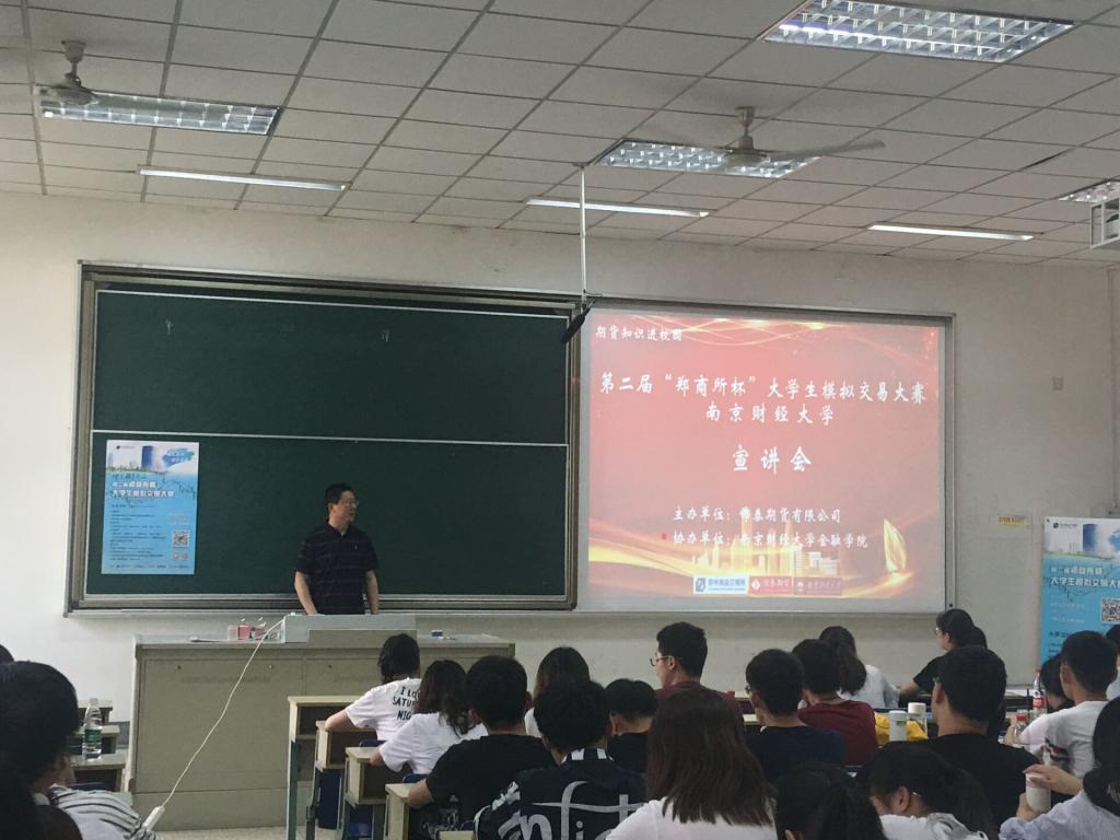 6月5日下午,期货知识进校园暨第二届“郑商所杯”大学生模拟交易大赛宣讲会在仙林校区德经楼117教室成功举行。大乐透 投资学系全体学生参加了本次活动,锦泰期货谢景炎老师和俞水祥老师担任本次活动的主讲人。