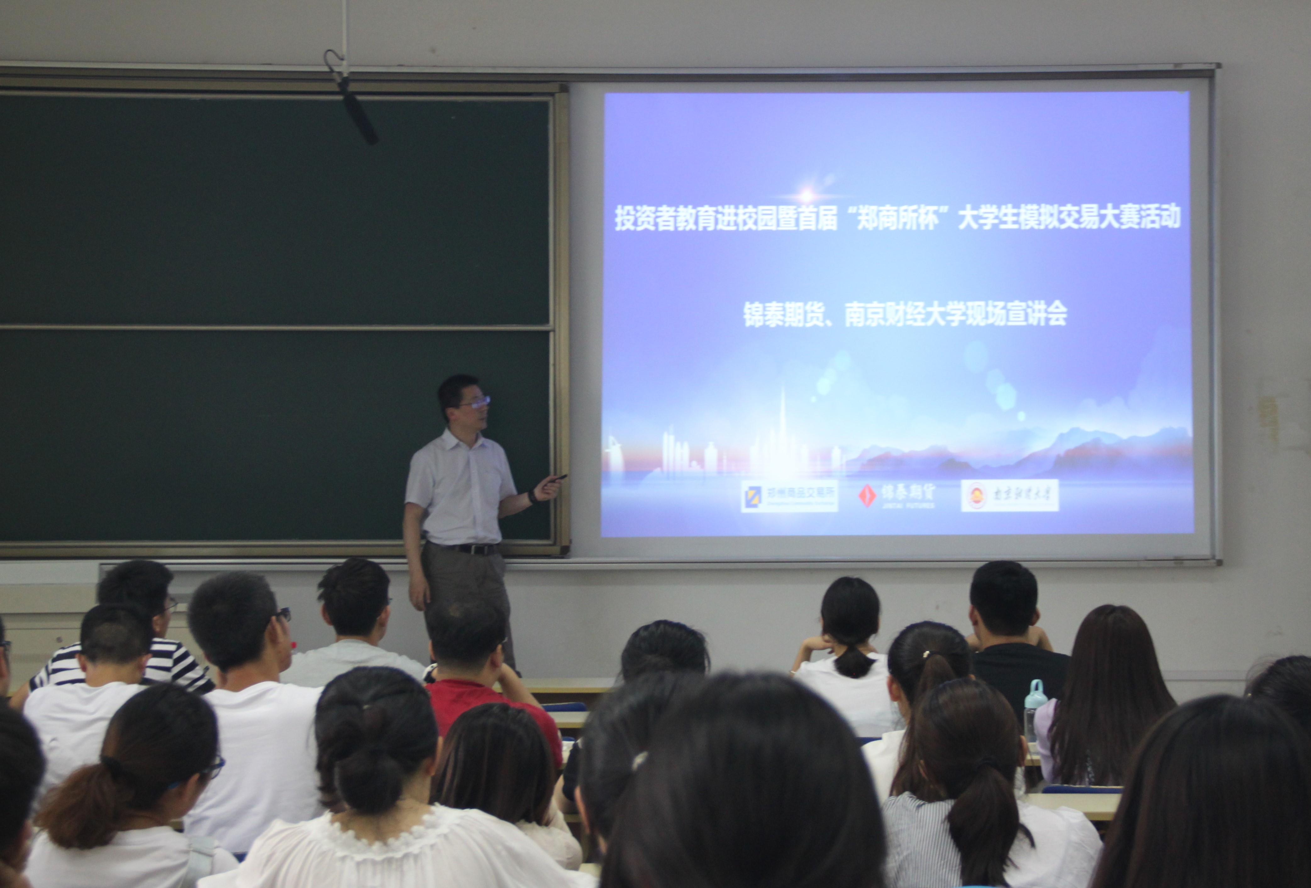 2018年6月15日16时,投资者教育进校园暨首届“郑商所杯”大学生模拟交易大赛大乐透 讲座在德经楼113教室成功举办。大乐透 部分学生参与了本次讲座,锦泰期货有限公司的谢景炎老师和俞水祥老师担任本次讲座的主讲人。