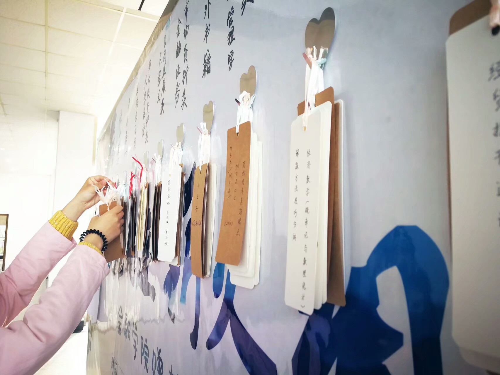 4月25至26日,领取书签活动在博远楼一楼大厅正式展开。同学们积极地参与其中,课间时分,他们走过展板,仔细翻看书签并挑选出适合自己的书籍。短短几个课间,展板上便没了书签的踪影。