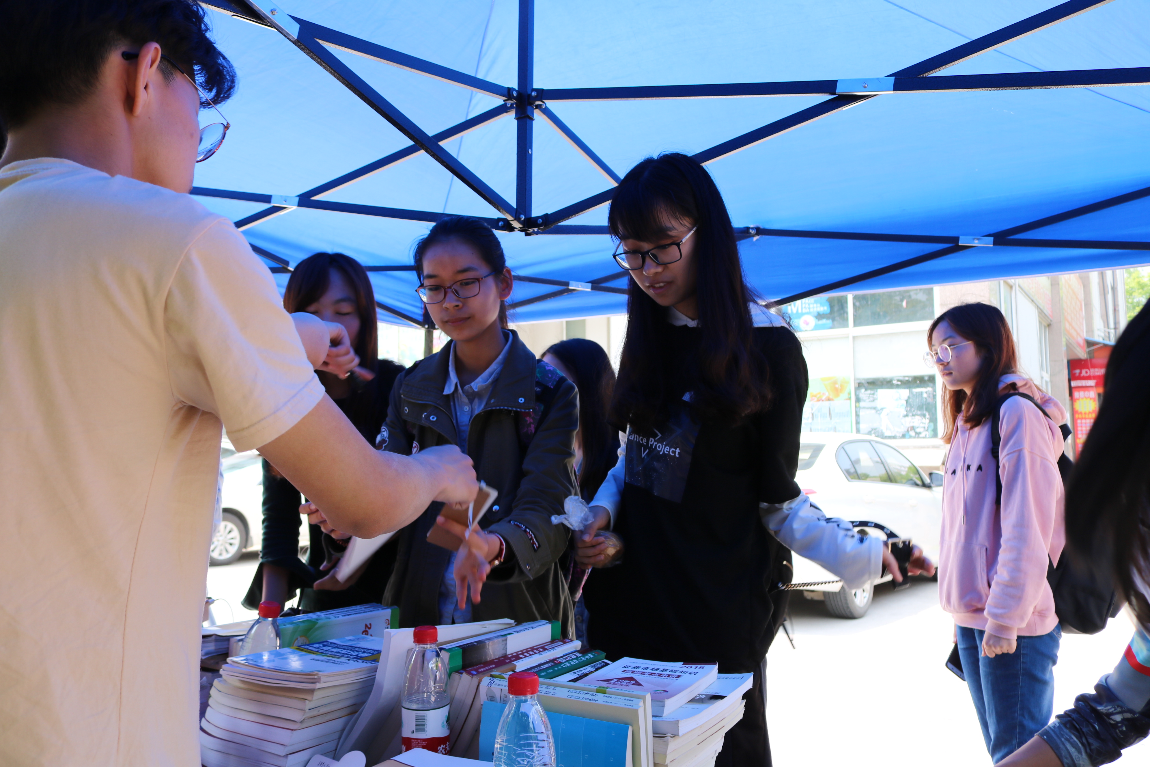 4月27日10时,凭借书签领书兑奖活动在中苑外场开展。写满丰富笔记的教科辅导书,各式各样高精尖的习题册,权威精选的英语单词本以及风格各异的课外读本整齐地摆放在桌子上。期间不断有同学拿着书签来兑换书籍,工作人员一一寻找并兑奖。现场秩序井然,一场知识与爱心的传递在潜移默化中使校园内的书卷气愈发浓厚。在书海畅游,大家都收获了不小的成果。