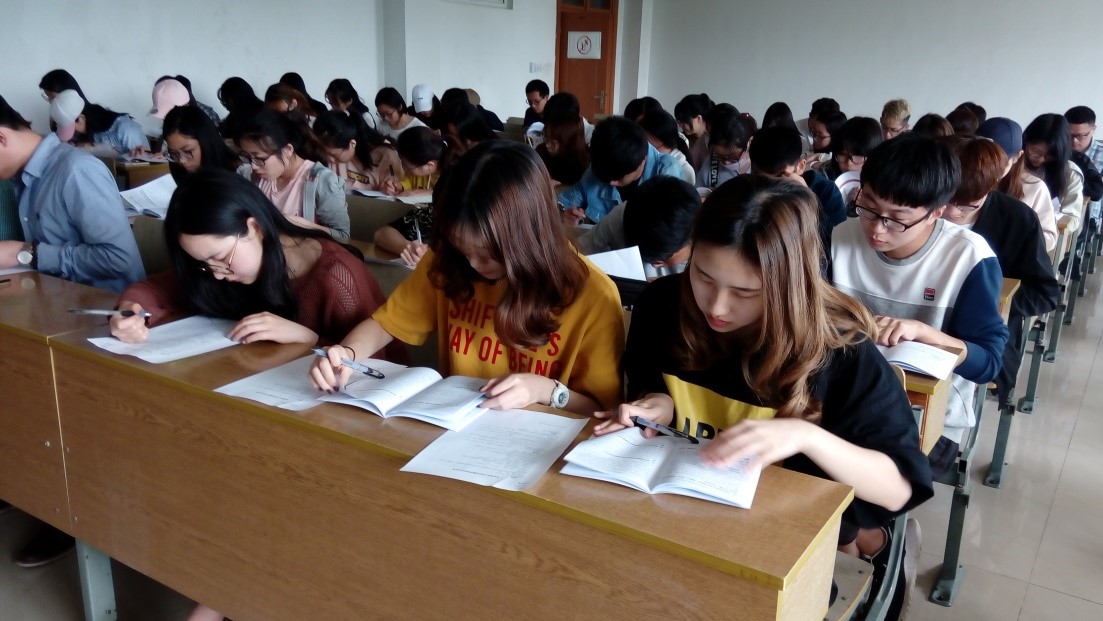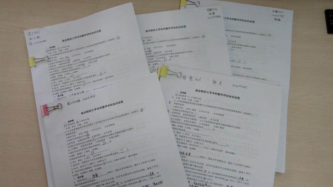 三是组织审核评估知识手册的学习,学院组织以班级为单位的本科教学评估知识开卷考试,考试结束后全体学工老师在党委副书记张小荣的带领下集体阅卷,对均分最高的班级和学生进行了奖励。
