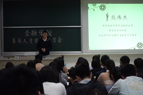 随后给我们带来精彩分享的是上届大乐透 学生会副主席、曾任扬子文学社社长的熊伟杰。他认为成功的人有相似的成功,而失败的人有不同的失败经验。学长用自己考研失败的现实案例,对考研、出国还是就业等问题做了深入的分析探讨,同时也向我们介绍了各种选择应当注意考虑的一些方面。比如选择考研的最终目的是为了逃避找不到工作的现实还是内心真的喜欢研究或者是想要弥补大学的遗憾?选择出国怎样考虑其机会成本?选择毕业后直接工作的怎样积累实习经验?深入浅出的交流让现场欢笑连连。