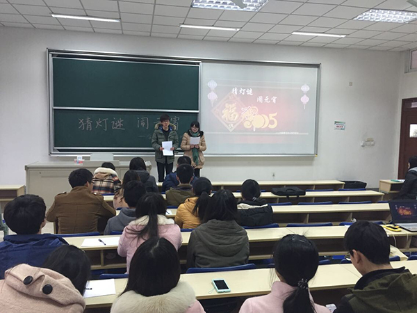 作为我国传统节日,庆元宵猜灯谜活动的传统由来已久。怀着启迪思维,陶冶情操,增长知识的目的,青马班特此开展雅俗共赏的灯谜活动。猜灯谜活动以小组形式进行,比赛分为三轮进行。第一轮为必答题,每组同学一边讨论一边在纸上写上给出的40道灯谜答案,分秒必争,通力合作。最后答对题数最多的小组幸运地得到团总支赞助的精致笔记本作为奖励。第二轮则更是精彩,为抢答题,小组间斗智斗勇,竞争激烈,将活动氛围推向了高潮,最后第三小组表现优异,勇夺第一,得到了精美的奖品。第三轮到了决胜的环节,以循环答题的形式进行,但由于竞争异常激烈,第三轮结束后又添加了加时赛,在这一环节同学们兴致极高,积极踊跃地参与。