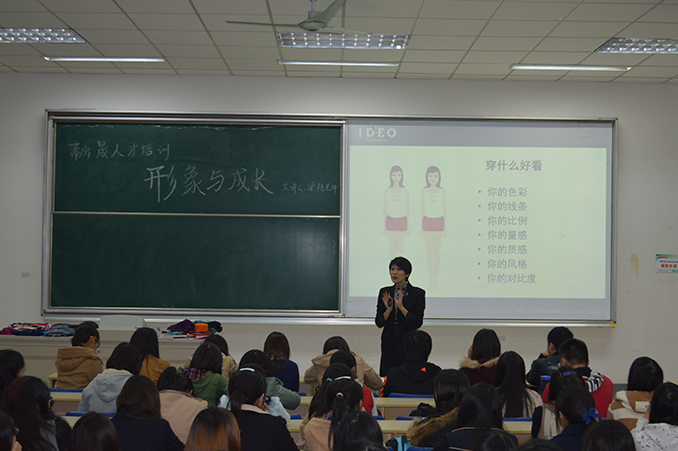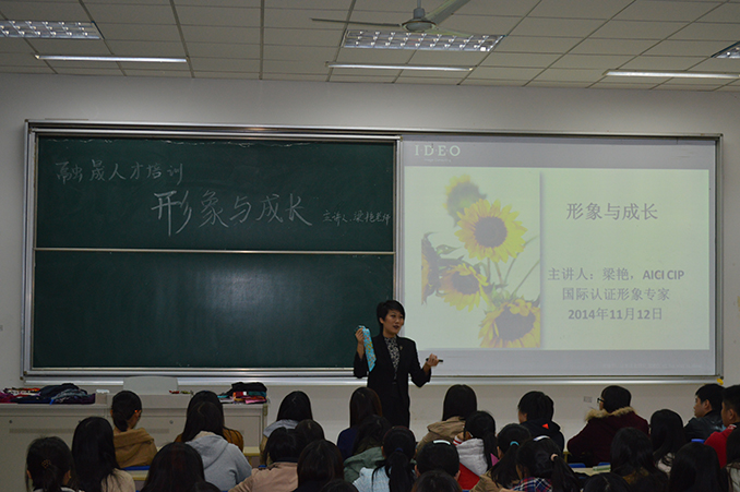 11月12日,大乐透 邀请国际认证形象专家梁艳老师来校举办讲座。本次讲座共分两场:上午在经济学科楼508会议室对金融和工商学院的老师进行培训,下午则在经济学科楼113教室对学生进行指导。讲座现场座无虚席,互动频频,气氛热烈。