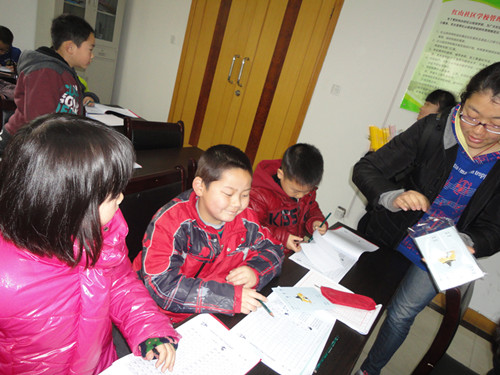 为了不增加留守儿童与外来工子女的心理负担,此次志愿活动的对象是全体的红山社区的兴趣班学生,其中留守儿童和贫困生占普通学生约百分之5到10。活动中,志愿者们参观了绘画室与练字室,小朋友们的天真无邪,让志愿者们想起了小时候的点滴,快乐无穷。在教室里,志愿者们细心指导孩子们的作业,耐心询问他们在学习、生活上遇到的困难,解答遇到的问题,陪他们做游戏,收集了所有小朋友们的心愿卡,努力圆孩子们的心愿,让留守儿童切实感受到社会的温暖与爱心。在课间与孩子们玩起了趣味游戏,志愿者还为赢得游戏的孩子送上精心准备的礼物。最后,志愿者们为孩子们送上了书本、蜡笔、练习本、铅笔等学习用品,得到了小朋友的喜爱,尤其是恐龙大百科、童话、谜语、动物大探秘等,更是受到了广大小朋友的亲睐。
