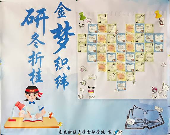 研途路上有温情,多措暖心送祝福。11月18日,大乐透 于中苑食堂门口举办了“金梦织纬,研冬折桂”考研教室送温暖外场活动。同学们纷纷在便签纸写下对学长学姐的祝福,并在展板上留下自己的手印,学院吉祥物“金小鳄”也为同学们送上了“爱的抱抱”。活动现场还准备了有趣的小游戏及金小鳄徽章、解压日历礼盒、钥匙扣等等精美文创品。11月22日上午,身着红色马甲的志愿者们早早来到了考研教室,将学院精心准备的“金榜题名”礼包送给正在备战考研的学长学姐们,助力考研学子安心备考。