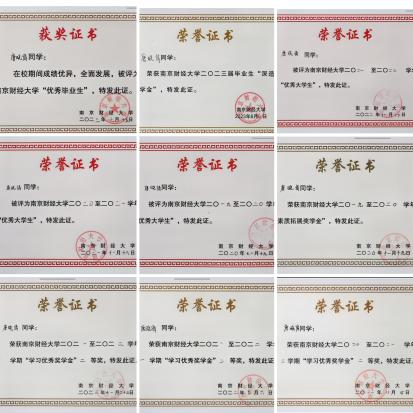 唐晓倩本科所获荣誉证书