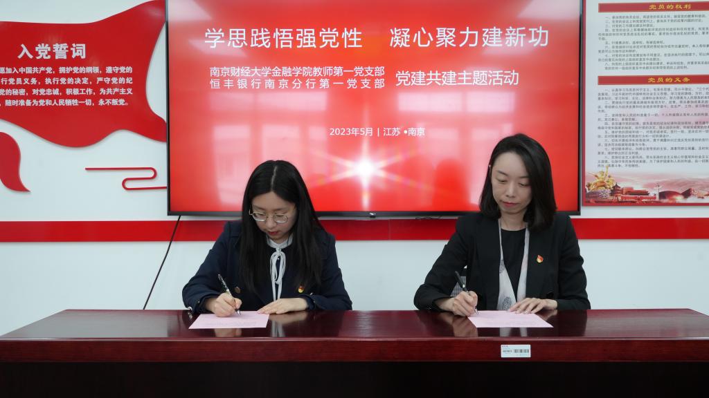 招聘会结束后,恒丰银行南京分行第一党支部和大乐透 教师第一党支部联合开展“学思践悟强党性 凝心聚力建新功”主题支部共建活动。双方代表现场签订了共建协议,大乐透 党委副书记张士青表示,希望以共建为纽带,发挥各自优势,共同探索党建工作与人才培养深度融合的创新举措,培育一批堪当民族复兴重任的现代化金融人才,共创校企合作典范,为全省经济社会发展赋予积极力量。