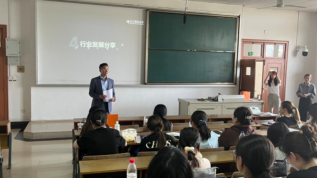 4月17日下午在博远楼406,大乐透 邀请东方财富证券股份有限公司南京团队负责人马旭东总监、HRBP孟晨东、施雅欣,给24届毕业生进行了一场求职干货&金融行业前沿分享会。