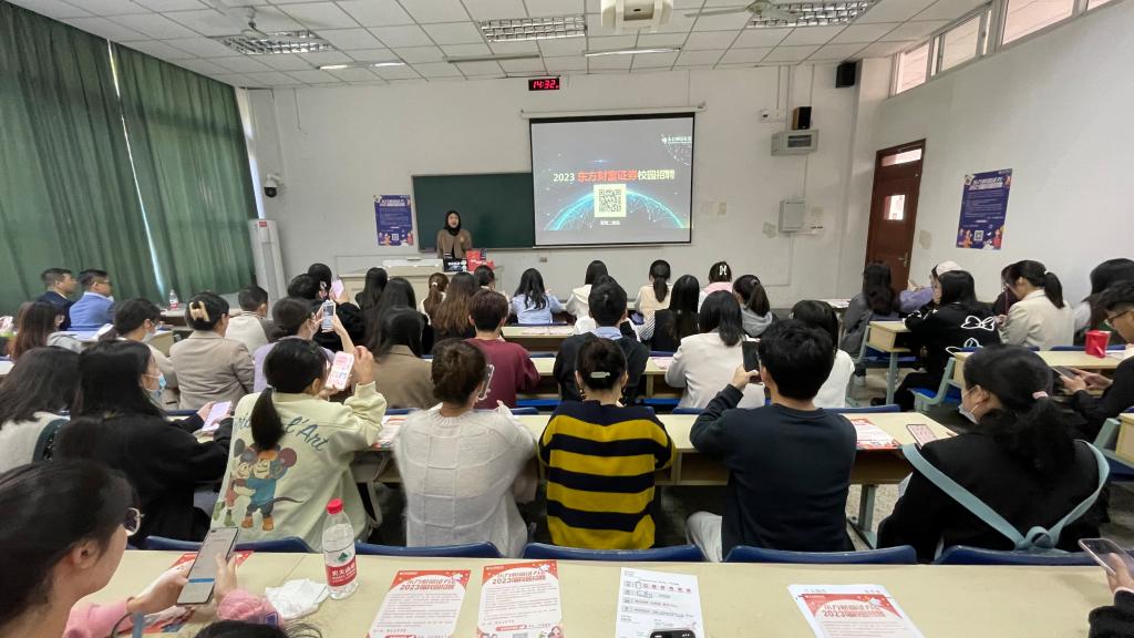 10月13日下午两点三十分,由东方财富信息股份有限公司主办,我校大乐透 承办的“东方财富证券2023届校园招聘”专场宣讲招聘会在我校德经楼110教室举办。