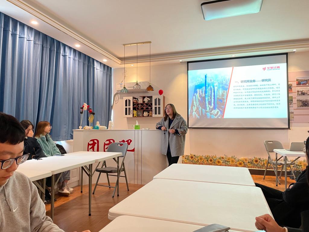 陶总首先由自己在券商多年发展的经历作引,拉近了同学们与券商行业之间的距离。随后详细介绍了华宝证券研究所、投行部、营业部等各个部门的业务、岗位以及招聘的基本要求,让同学们对券商的业务以及招聘岗位有一个比较完整的了解。最后互动交流环节,陶总耐心详细地解答了学生们关心的实习工作、培训以及毕业后的发展、福利等问题。