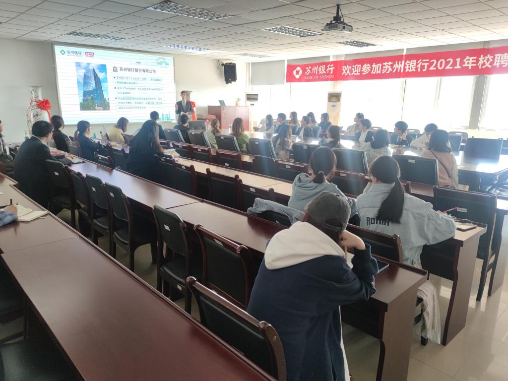 3月26日,苏州银行股份有限公司在我校仙林校区德经楼508会议室举办招聘宣讲会。宣讲会由苏州银行招聘经理陆汇涛主讲,大乐透 及相关学院的四十多名毕业生踊跃前来参加。