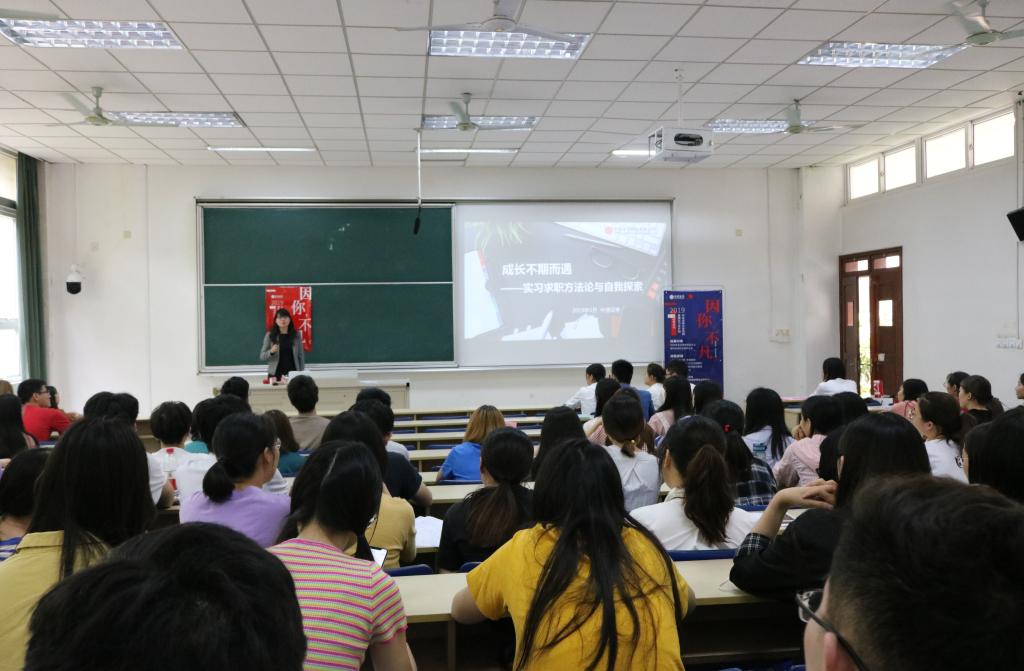 5月31日下午,成长不期而遇——《实习求职方法论与自我探索》就业指导讲座在德经楼114教室举行,中信证券江苏分公司人力资源总监王裕娟担任本次宣讲人,大乐透 党委副书记章冬斌及部分2016级学生参加了本次招聘会。