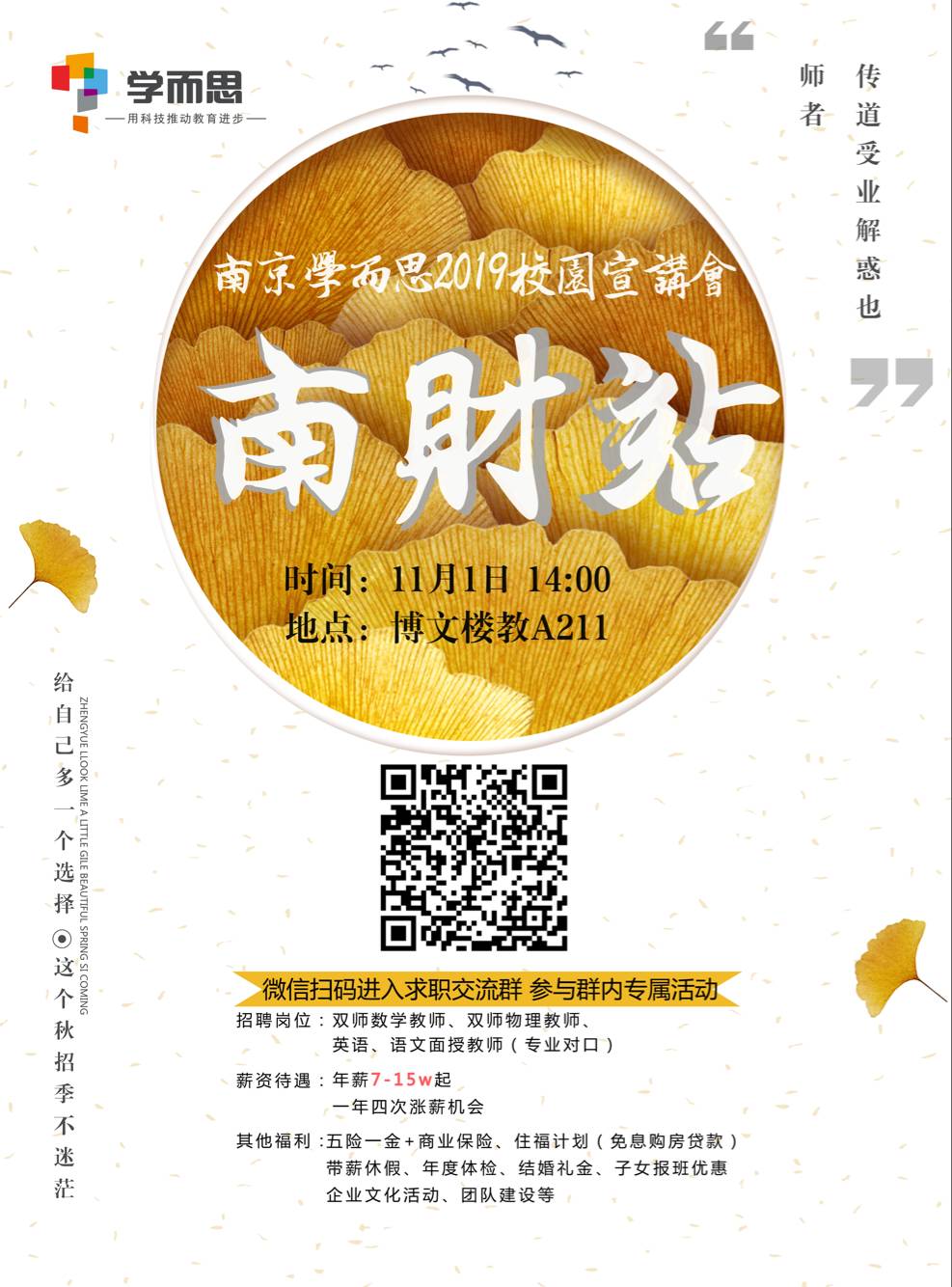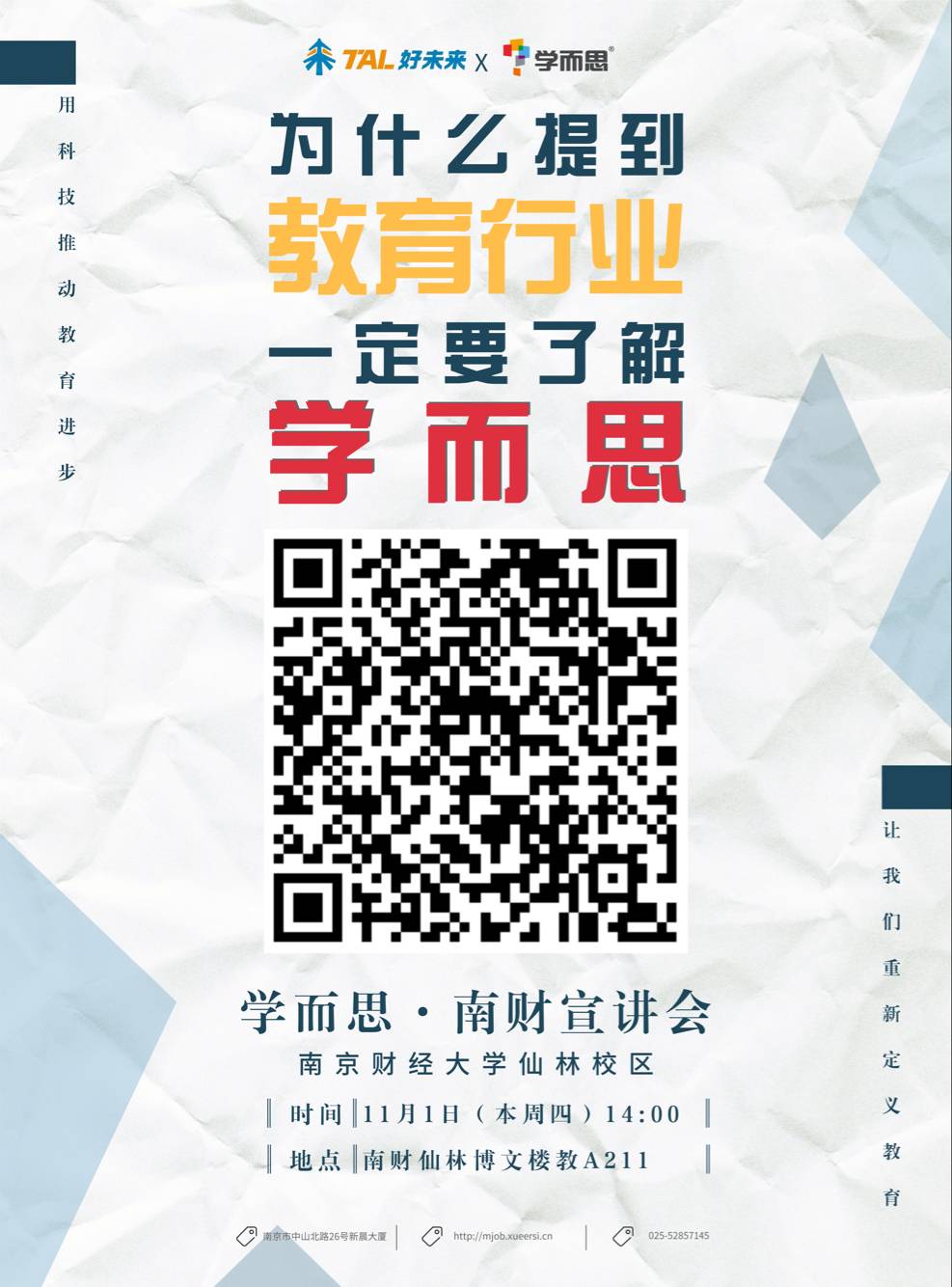微信扫码加入【南财】学而思求职交流群,参与群内专属活动,好礼、Offer等着大家~