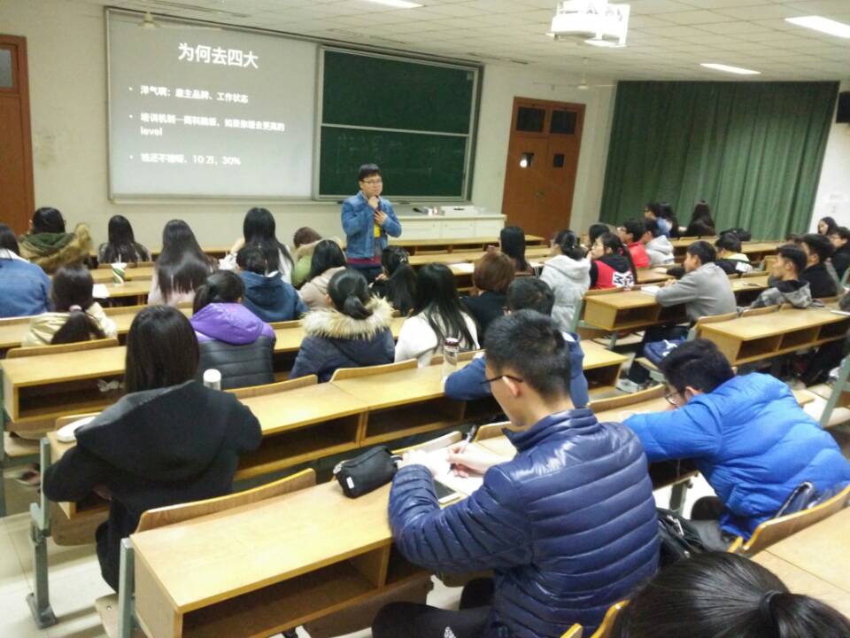 2017年3月17晚18:30,大乐透 青年互助服务中心于教C204举办“爱分享”系列讲座之面包求职干货分享会活动,此次活动邀请了“北大群面大神”刘思毅主讲,他为同学们分享了面试求职、制作简历、商务礼仪以及职业规划等方面的经验,同时对于四大,投行,PE等五百强企业做出重点介绍。主讲人还对部分讲座现场同学的简历进行了指导与修改并回答了现场同学的提问。