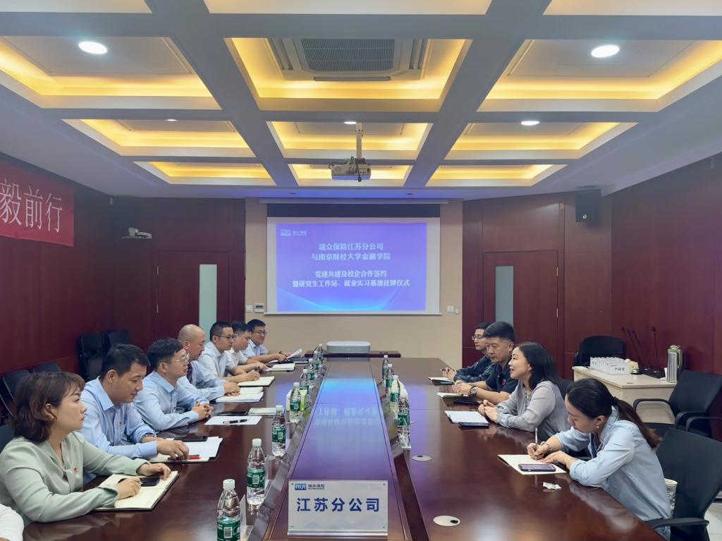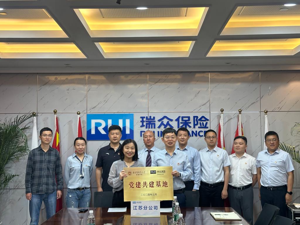 在签约环节,孙菲书记、张士青副书记与瑞众保险江苏分公司党委书记张国武、副总经理李强分别代表双方签署了党建共建、就业实习基地和研究生工作站合作协议。随后,双方领导共同为校企合作挂牌仪式揭牌,标志着双方合作进入了一个新的阶段。