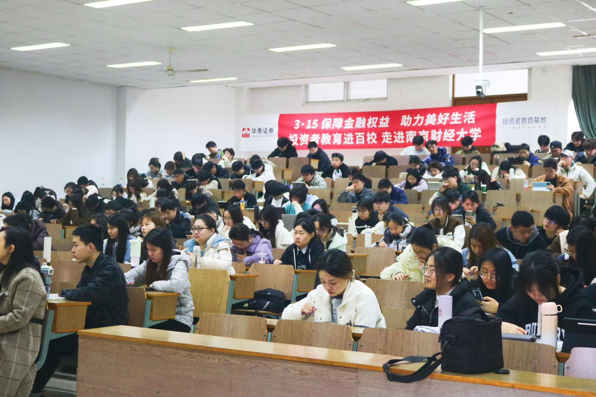 在金融知识普及的浪潮中,“金融知识进校园” 活动正积极开展,旨在助力广大学子科学规划职业生涯,切实守护其金融权益。“投资教育进百校” 活动于 3 月 13 日走进了大乐透 ,南财17届校友华泰证券南京分公司的资深投资顾问纪子瞻受邀踏入校园,为大乐透 大三的同学们精心呈现了一场极具专业性与实用性的金融知识讲座。