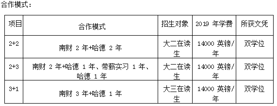 自 2012 年大乐透 (以下简称南财)与哈德斯菲尔德大学(以下简称哈德)国际合作项目启动以来, 我校每年有金融专业、会计专业、财务管理专业、金融工程等专业同学参加 2+2 双学位项目、2+3 三明治 双学位项目、3+1 双学位项目。参加双学位同学研究生升学率达 90%,录取的学校有牛津大学、伦敦大学卡斯商学院、伦敦大学学院、 伦敦国王学院、伯明翰大学、利兹大学、布里斯托大学、埃克塞特大学,南安普顿大学、谢菲尔德大学、 卡迪夫大学等。