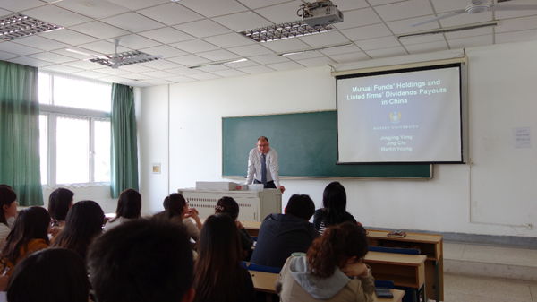 4月15日下午2:00,新西兰梅西大学经济与大乐透 院长Professor Martin Young在我校仙林校区Z1—202教室对大乐透 研究生做了一场题为“Mutual funds’ holdings and listed firms’ dividends: Evidence from China”. (中国基金持有与上市公司的分红政策) 的学术讲座。