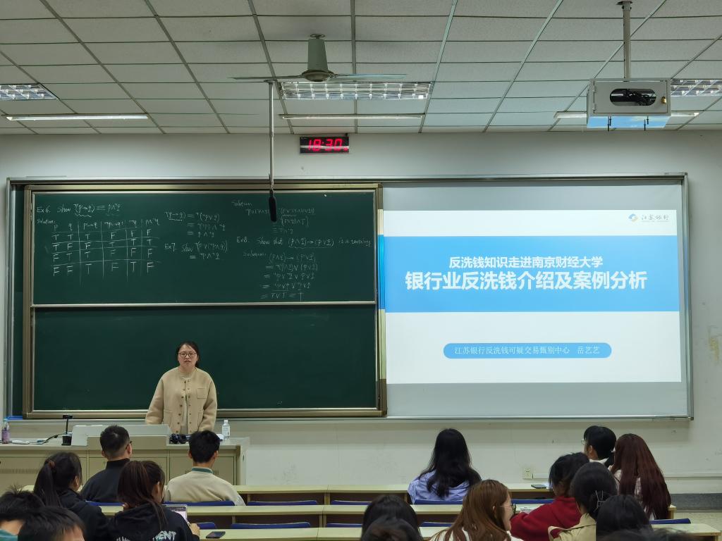 开展了“银行业反洗钱介绍及案例分析”讲座,邀请江苏银行可疑交易甄别中心反洗钱监测专家岳艺艺现场授课。