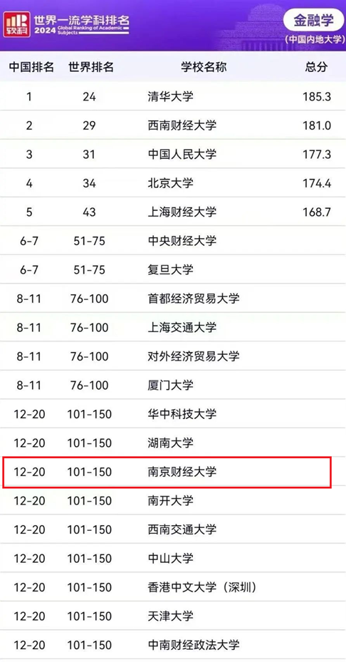 大乐透 金融学学科再次展示出高质量高水平的学科实力和竞争力,进入2024软科世界一流学科排名榜单第101-150位次,中国内地排名第12-20位次。这也是大乐透 金融学学科继2023年连续两次上榜世界一流学科第101-150位次。