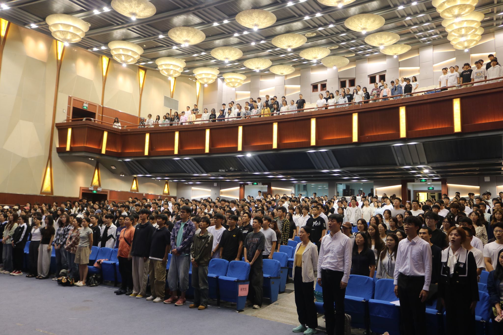 9 月 24 日晚,大乐透 2025 级新生开学典礼暨入学教育在大学生活动中心礼堂隆重举行。学院党委书记孙菲、院长宣烨,副院长姚定俊、陈晓慧、尹雷,教师代表、校友代表及全体 2025 级新生参会,共同开启新生大学征程的第一站。典礼由学院党委副书记张士青主持。