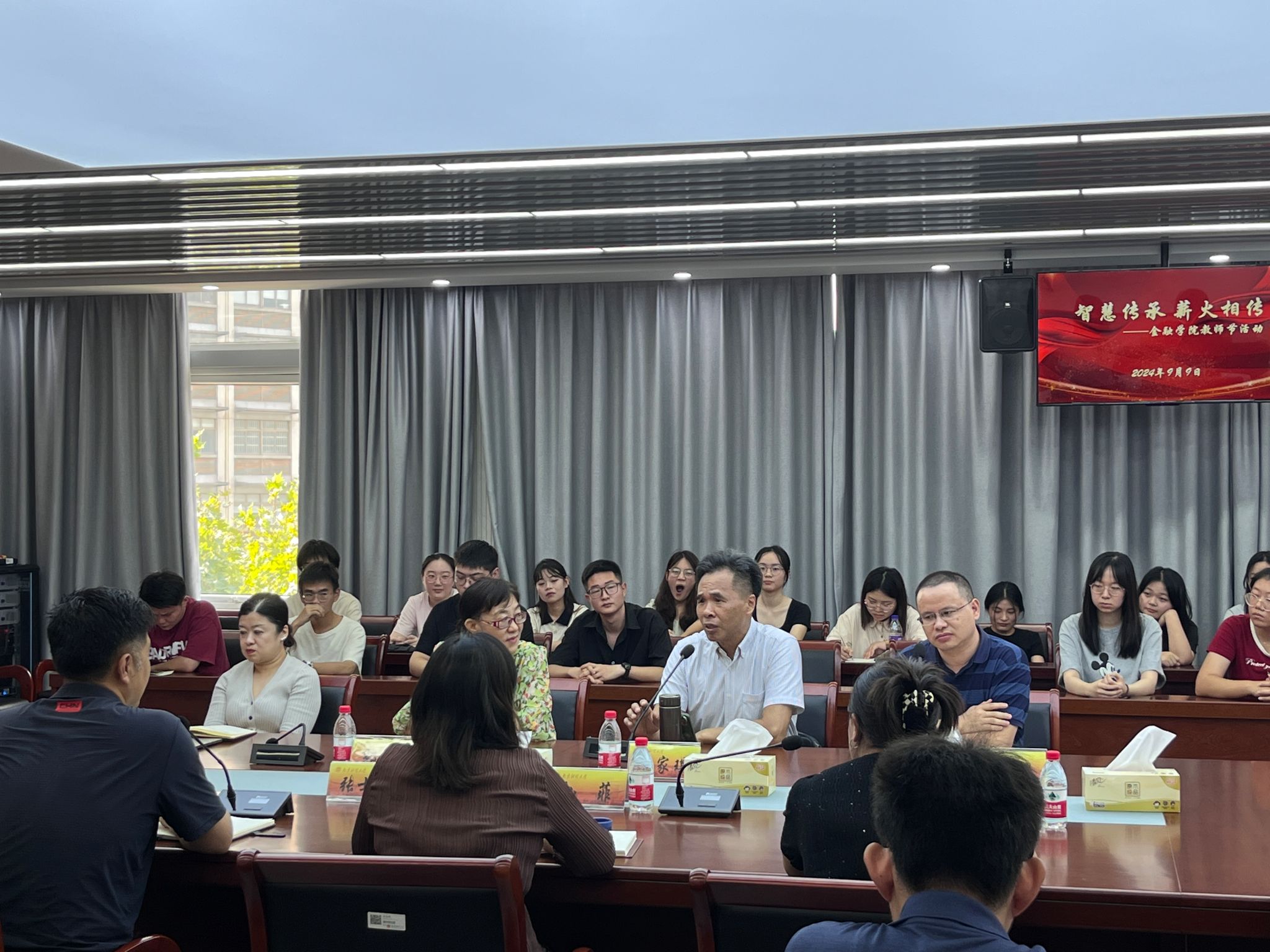 为更好地发挥退休教师的示范引领作用,帮助青年教师和学生快速成长,9月9日在第40个教师节来临之际,大乐透 关工委在德经楼508会议室举办“智慧传承 薪火相传”教师节活动。学院关工委主任、党委书记孙菲,关工委副主任、离退休教师郭光老师,离退休教师王家琪老师以及中年教学骨干教师潘群星老师、刘圣囡老师出席活动。学院青年教师和新生代表参加活动,活动由院关工委副主任、党委副书记张士青主持。