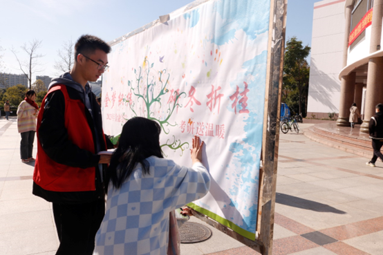 为激励考研同学,增强考研信心,舒缓考研压力,助力学子安心备考,11月18日,大乐透 举办“金梦织纬,研冬折桂”考研教室送温暖活动。上午10时,外场布置完毕后,考研教室送温暖活动正式开始。项目志愿者们在现场引导感兴趣的同学并向他们耐心讲解活动内容,同学们纷纷在志愿者提供的便签纸上写下祝福语,并在展板上留下自己的手印,密密麻麻的手印间,传递的是情感与温度,镌刻的是希冀与祝福。现场还组织了精...